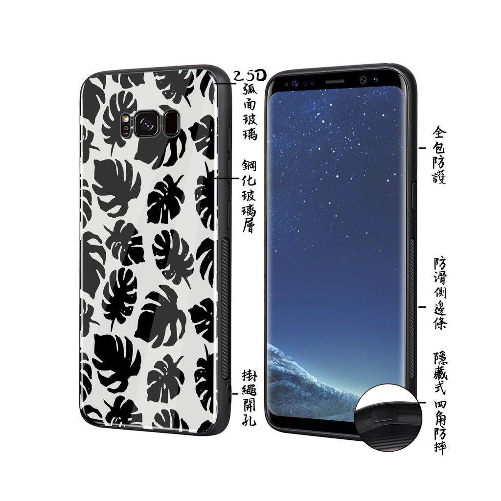 黑白手掌葉款 小物剪影系列 防摔手機殼 CSAE01